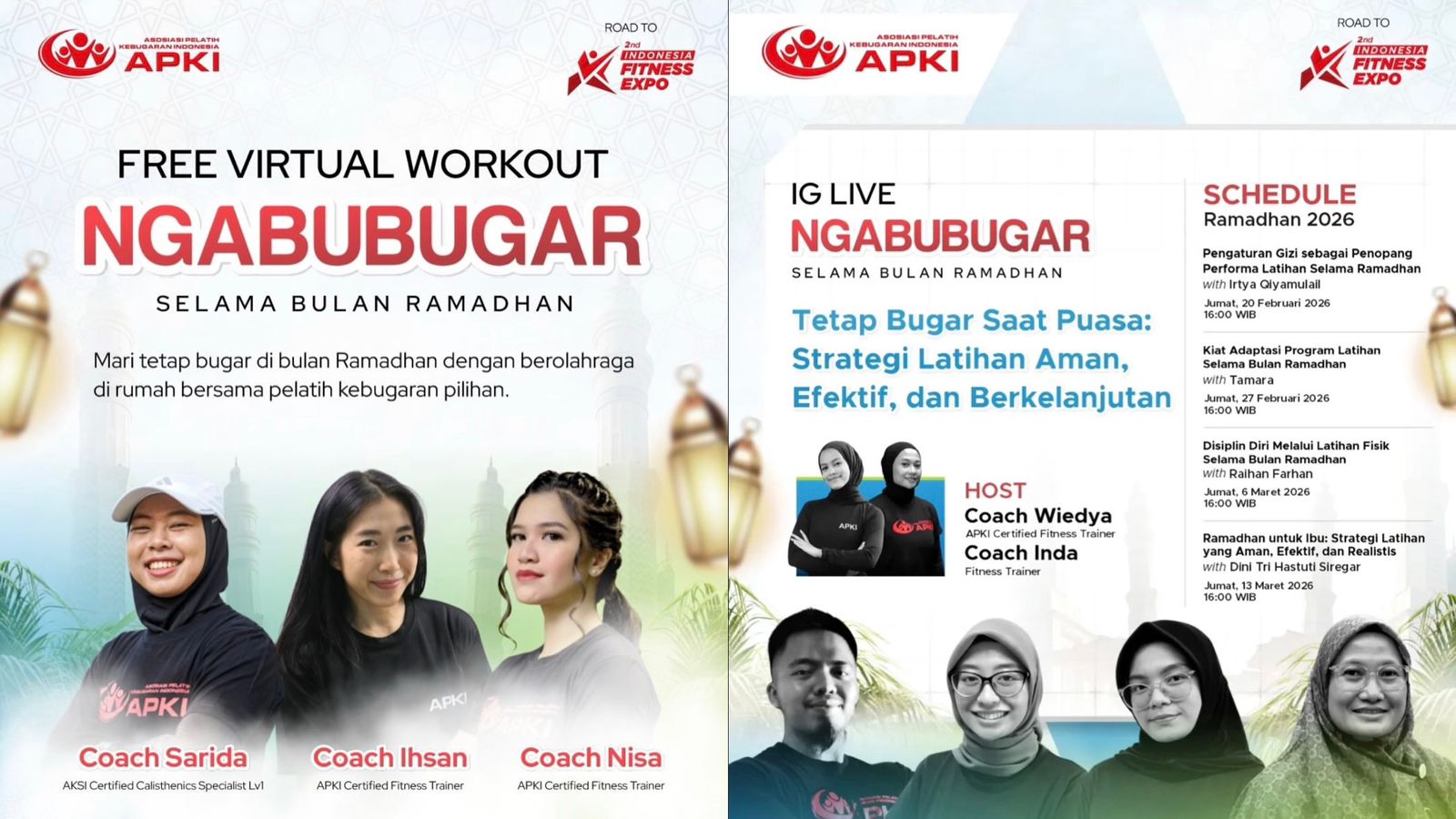 Fenomena ini menunjukkan bahwa kebugaran telah berkembang dari sekadar aktivitas olahraga menjadi bagian dari gaya hidup yang tetap dijaga sepanjang tahun, termasuk selama bulan puasa. Melihat perubahan perilaku tersebut, APKI menghadirkan rangkaian program Ngabubugar sebagai bagian dari agenda Road to Indonesia Fitness Expo 2026, sebuah platform yang menghubungkan komunitas, edukasi, dan industri kebugaran di Indonesia.