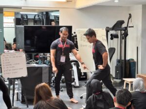 Sesi ini dibawakan oleh Coach Aufra sebagai edukator utama, bersama Coach Imel dan Coach Abraham sebagai co-edukator, dengan pendekatan kolaboratif dan interaktif. Practical Session menjadi jembatan antara teori dan praktik lapangan, di mana peserta diajak berdiskusi, menganalisis, dan merefleksikan keputusan kepelatihan secara kontekstual. Pendekatan ini mendorong pelatih untuk tidak sekadar mengikuti pola latihan, tetapi mengembangkan kepekaan analitis dan refleksi berkelanjutan dalam praktik kepelatihan kebugaran.