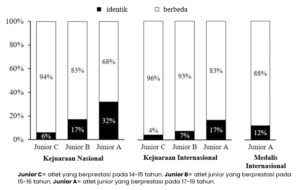 - Atlet tingkat internasional Junior C dan atlet internasional senior hanya 3,9% yang identik.